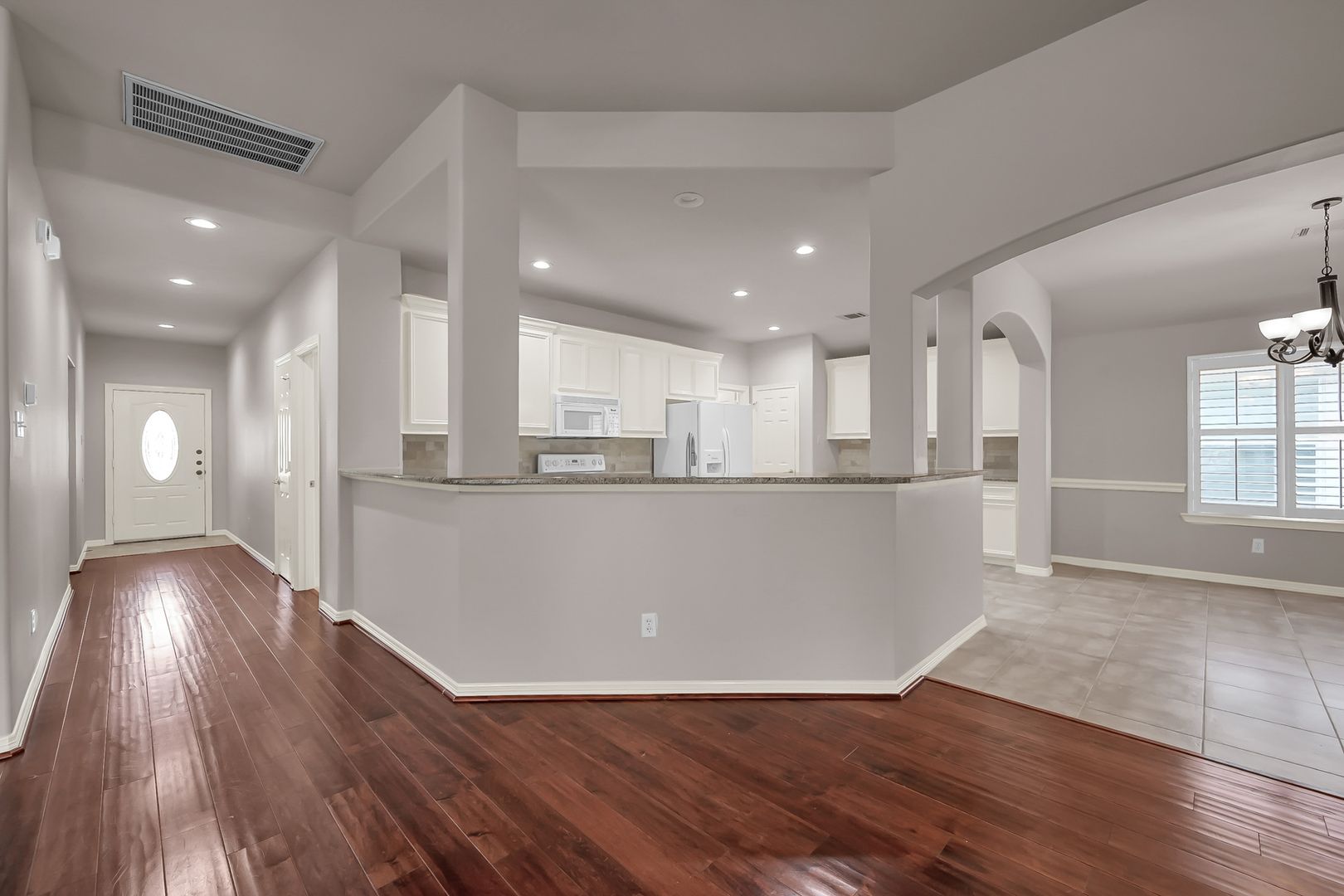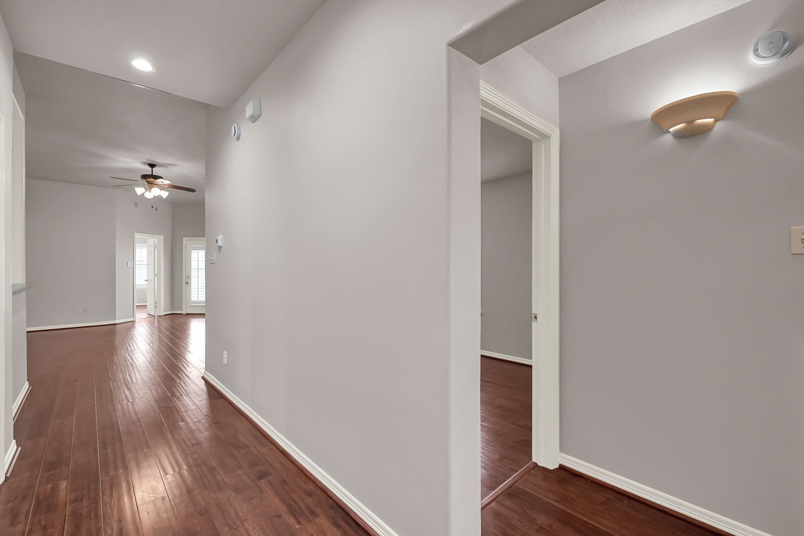 Pristine quaint home in sought after April Sound. Wood floors throughout in open concept plan. Big kitchen with lots of counter space and cabinets. Split plan with large master suite. Master bath has double sinks, whirlpool tub and separate shower. Fully fenced back yard. April Sound has community pool, tennis, fitness club and boat ramp. A great place to live.